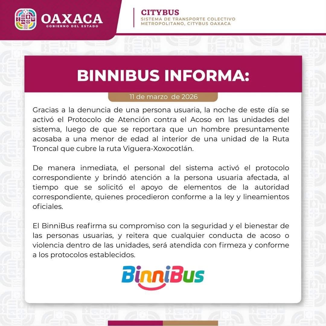 March 13, 2026Daiana HernandezNoticias,OaxacaEn atención al auxilio solicitado por un operador del BinniBus...