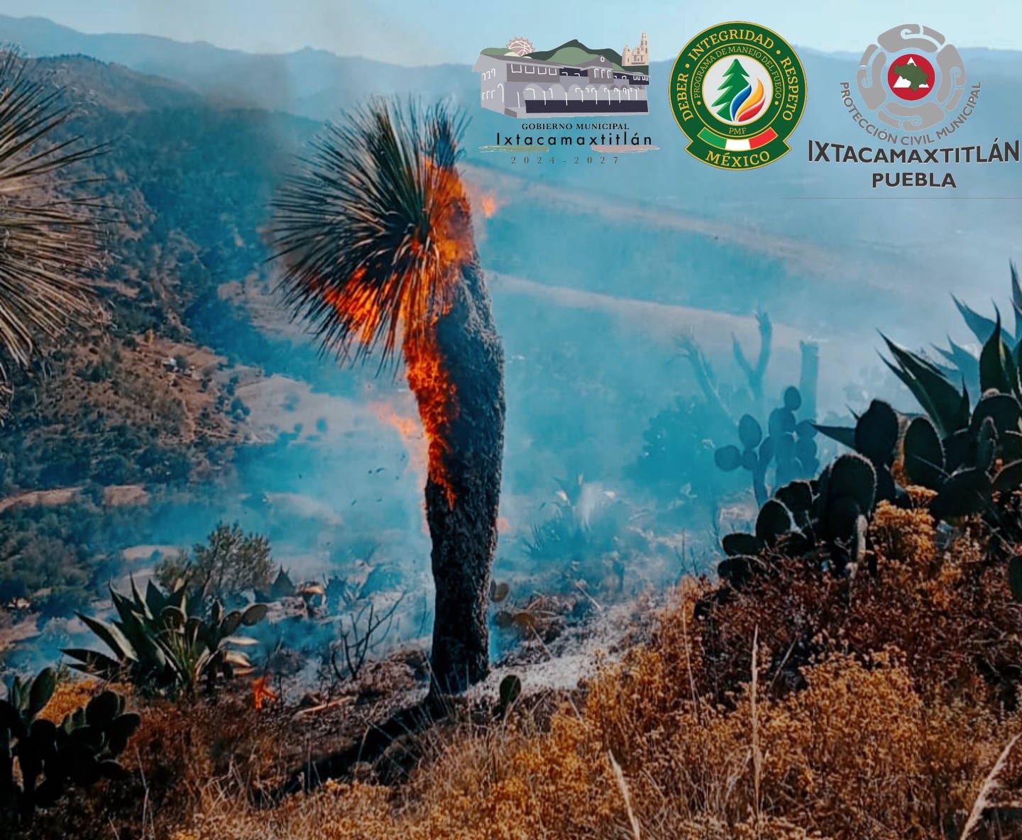 Atienden incendio en Cerro Blanco, en Ahuateno
