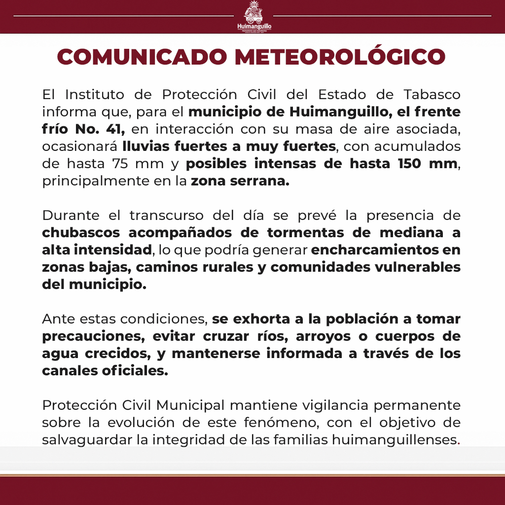 March 18, 2026Alberto PerezNoticias,TabascoCentla,Saúl Armando Rodríguez RodríguezAnte las lluvias generadas por el frente frío número 41...