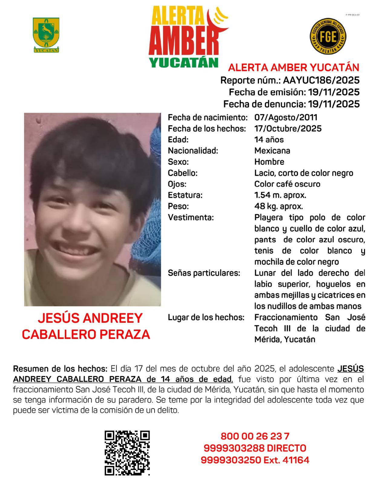 November 20, 2025Paola ParraYucatánLa Fiscalía General del Estado activó la Alerta Amber Yucatán...