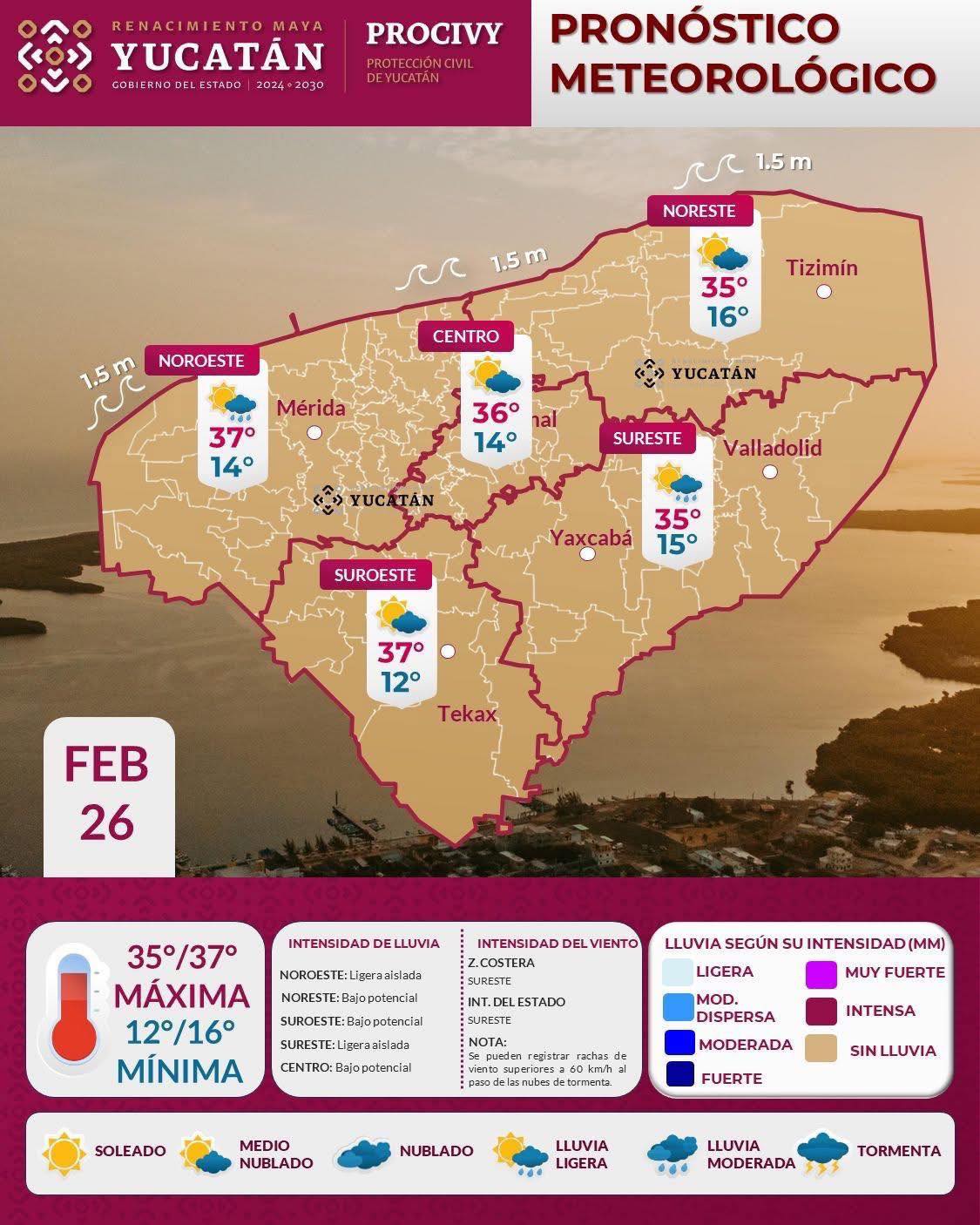 February 26, 2026Alam UcYucatánNoticias Yucatán ClimaEl ingreso de aire marítimo tropical procedente del Mar Caribe...