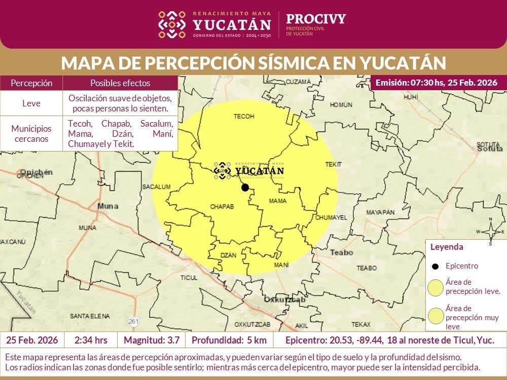 February 25, 2026Ricardo CervantesYucatánUn nuevo sismo de magnitud 3.7 se registró la madrugada...