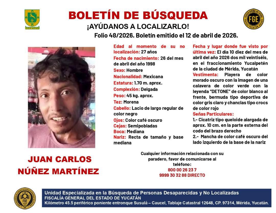 April 13, 2026Alam UcYucatánNoticias Yucatán Local FGELa Fiscalía General del Estado de Yucatán activó un boletín...