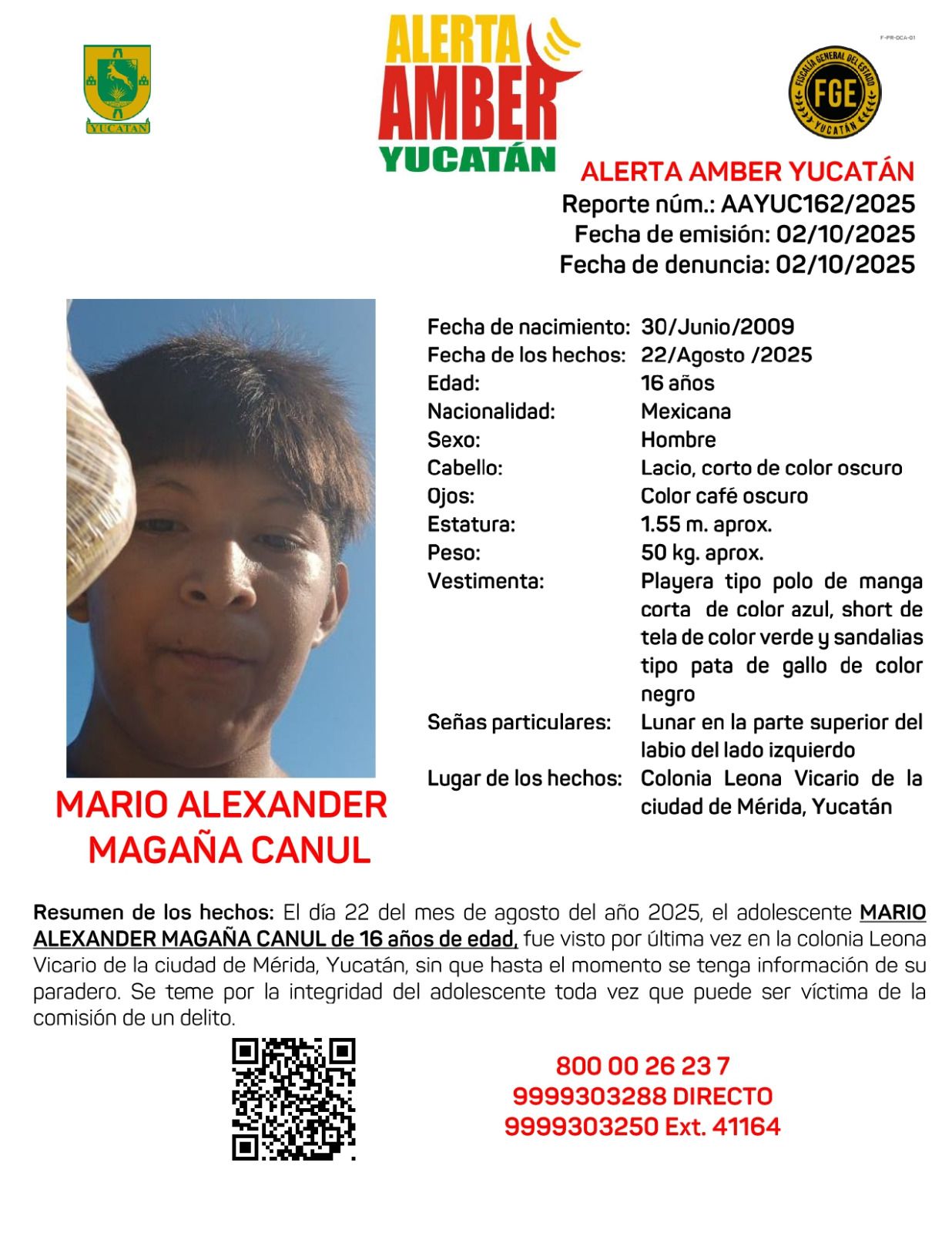 October 3, 2025Merly GomezNoticias,Seguridad,YucatánLa Fiscalía General de Yucatán activó una aleta amber para...