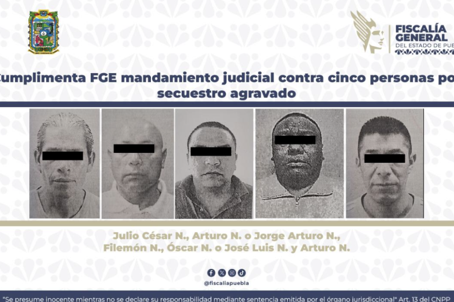 Como resultado del seguimiento a una investigación por secuestro, la Fiscalía General del Estado de Puebla (FGE) dio cumplimiento a órdenes de aprehensión por reclusión… Read More »Cumplimenta FGE mandamientos judiciales contra cinco personas por secuestro agravado