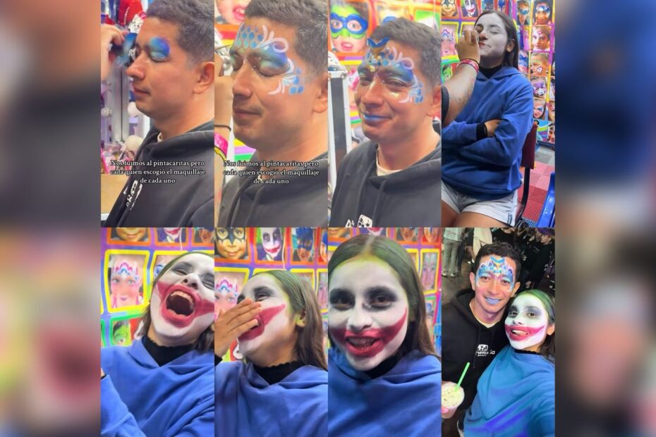 Una pareja decidió participar en una dinámica poco común: ir a las “pintacaritas” y dejar que cada uno eligiera el maquillaje del otro… sin poder ver el resultado hasta el final.