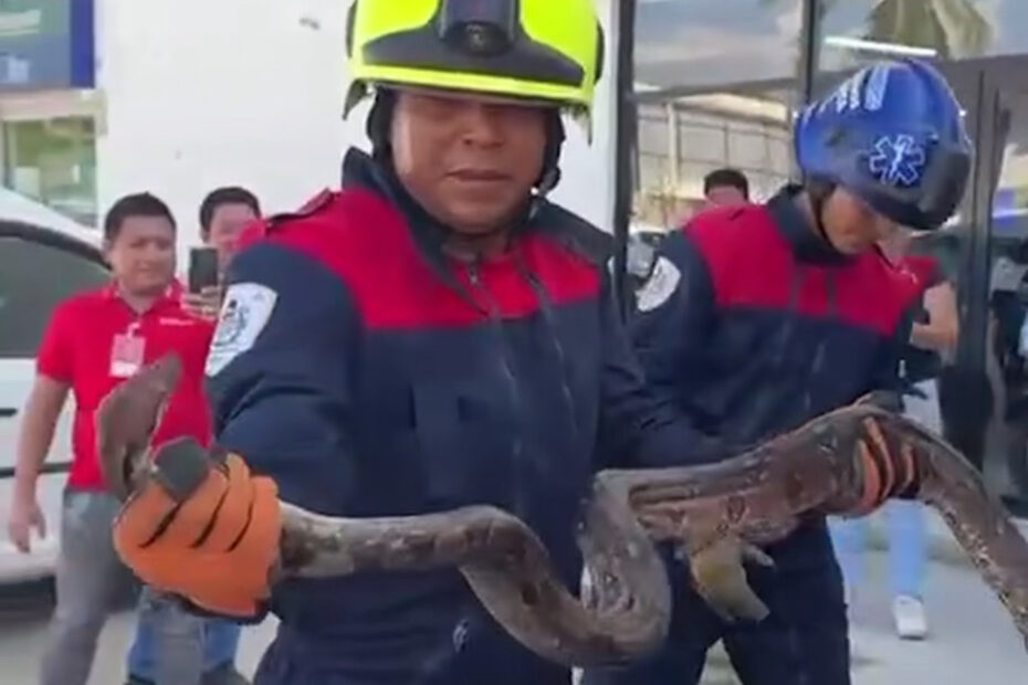 Los testigos y el dueño, solicitaron el apoyo del Heroico Cuerpo de Bomberos, quienes acudieron de inmediato para atender el caso, para intentar atrapar a la serpiente y evitar que pudieran causarle algún daño.