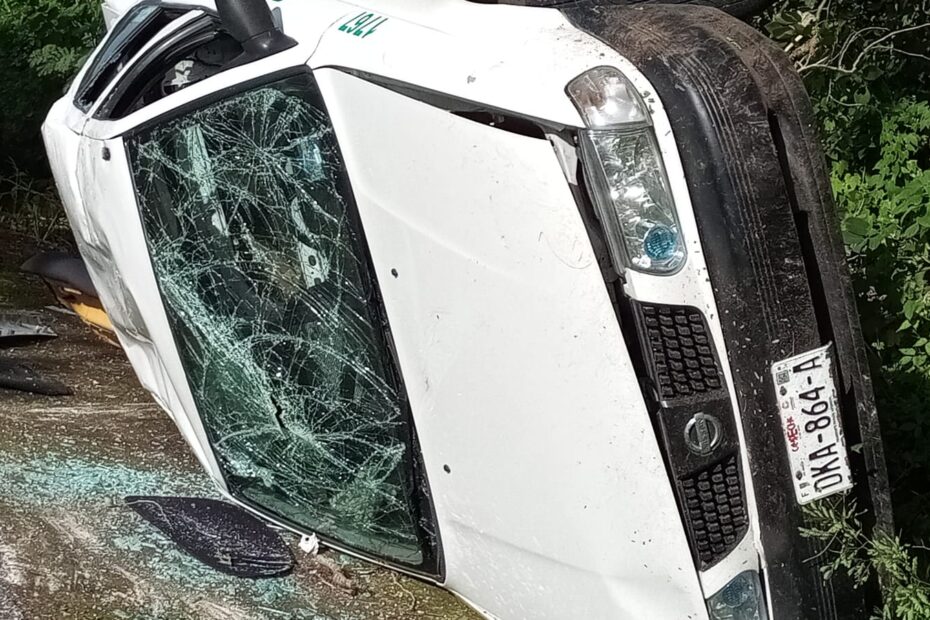 Vuelca auto del IMSS, exceso de velocidad la causa