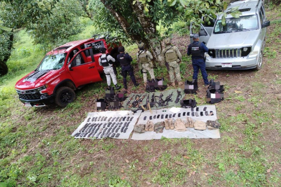 Uruapan, Mich.- 3 de octubre de 2025.- Elementos de las secretarías de Seguridad Pública (SSP) y de la Defensa Nacional (Defensa) aseguraron una ametralladora, ocho… Read More »Fuerzas estatales y federales decomisan armamento en Blindaje Uruapan