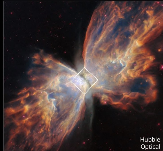 El James Webb acaba de revelar detalles nunca antes vistos en el corazón de NGC 6 mil 302, la Nebulosa de la Mariposa a 3… Read More »El telescopio, James Webb, capturó el último aliento de una mariposa cósmica