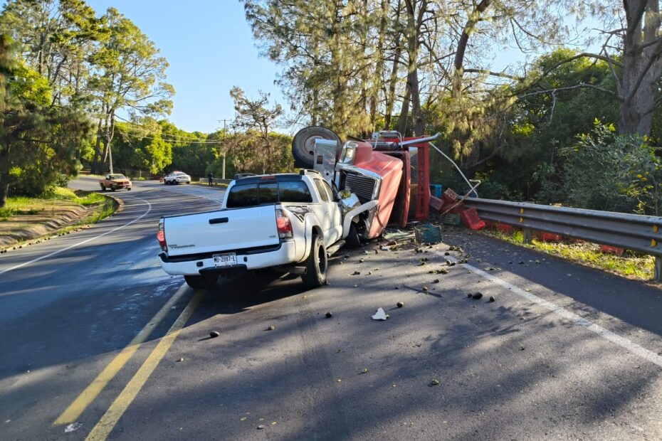 Aparatoso choque volcadura, en la carretera Uruapan – Los Reyes