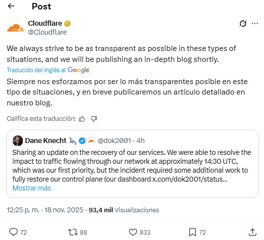 Millones de usuarios alrededor del mundo se quedaron sin acceso a páginas web y plataformas digitales luego de que un fallo generalizado en la infraestructura… Read More »Falla masiva de Cloudflare provocó interrupciones globales y dejó sin acceso a millones de usuarios