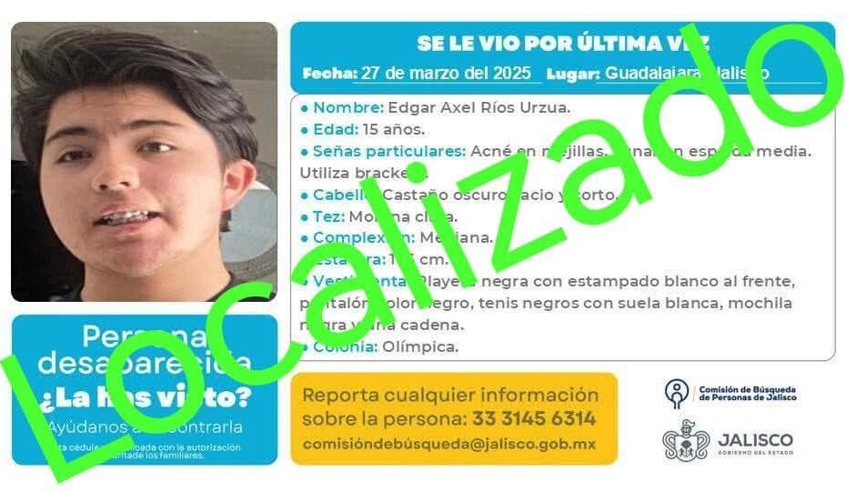 El caso Axel Ríos, el joven de la UDG que fue localizado, confirma una línea de investigación por reclutamiento de menores. Tras 6 meses de… Read More »Caso Axel Ríos, el joven de la UDG que fue localizado, confirma una línea de investigación por reclutamiento de menores.