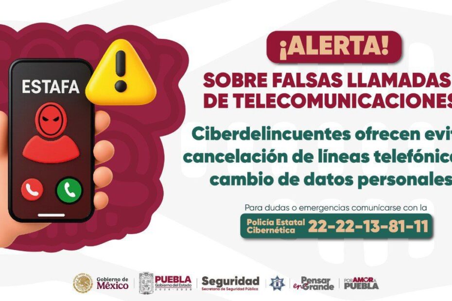 • Se exhorta a la ciudadanía a registrase ante la PROFECO para evitar llamadas comerciales no deseadas y así inhibir delitos como fraude o extorsión.… Read More »Alerta Seguridad Pública sobre llamadas falsas para robo de información en Puebla