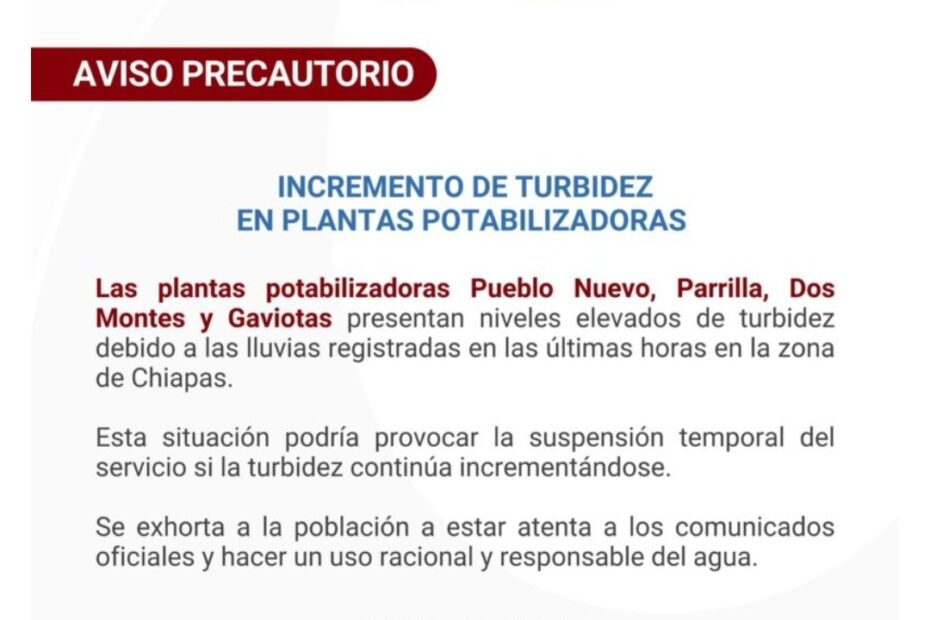 El director del Sistema de Agua y Saneamiento (SAS), Alfredo Villaseñor Negrete, informó que, a pesar del aumento en la turbiedad del río Grijalva debido… Read More »Gracias al nuevo acueducto, más de 400 mil habitantes de Villahermosa reciben agua limpia pese a la turbiedad del Grijalva