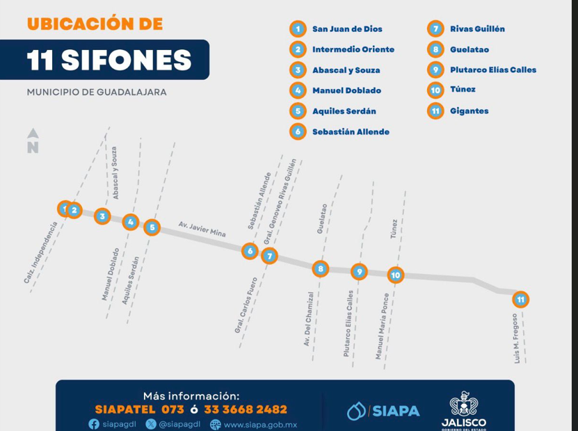 Ante el temporal que se aproxima, SIAPA concluye limpieza de 11 sifones y retira casi mil metros cúbicos de azolve para prevenir inundaciones en Guadalajara… Read More »SIAPA Termina limpieza en 11 sifones ubicados