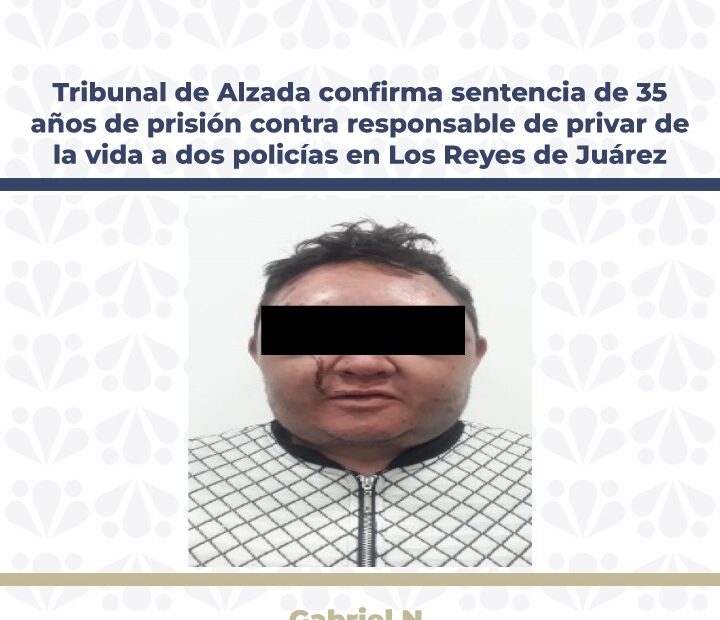 El Tribunal de Alzada confirmó con base en los argumentos presentados por la Fiscalía General del Estado, la sentencia de 35 años de prisión contra… Read More »Tribunal de Alzada ratifica pena por asesinato de policías de Los Reyes de Juárez