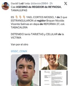 La Secretaría de Seguridad Ciudadana (SSC) capitalina informó este 9 de diciembre la detención de un joven, presuntamente implicado en el homicidio del regidor de Reynosa.