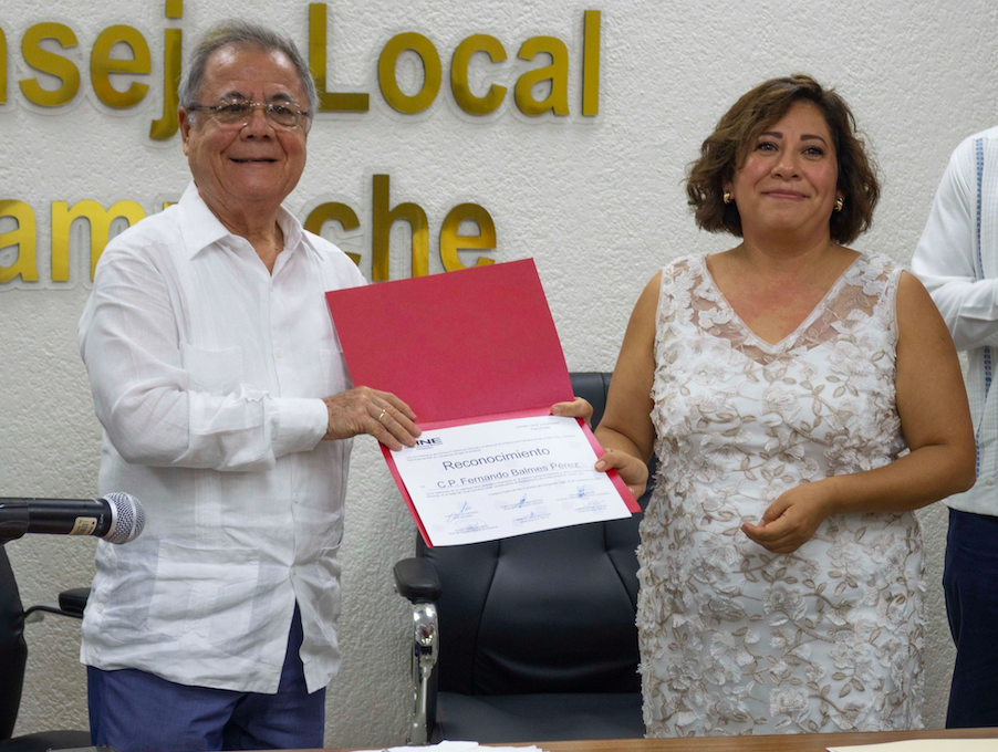 INE CAMPECHE ENTREGA RECONOCIMIENTO A FERNANDO BALMES